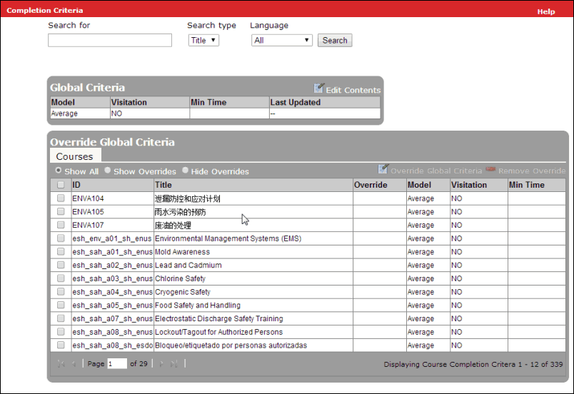 Note: If you have also set course-specific completion criteria for one or more courses, the course-specific criteria supersede the global criteria.