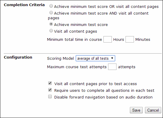 You can set global (company-wide) completion criteria that learners must meet in order to complete any course in the Advanced Compliance Library.