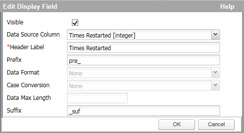 The remaining fields may or may not be enabled, depending on the Data Source Column selected, as described in the following list: