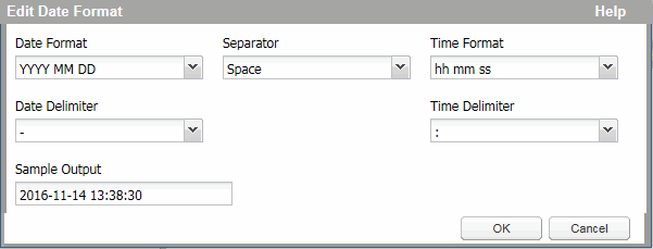 Data Format - Displays the current format for the datetime field. The default format is YYYY-MM-DD hh:mm:ss.