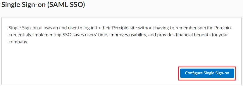For the other aspects of configuring SSO with Skillsoft Percipio Platform, such as downloading your IdP's metadata file, see your IdP's documentation.