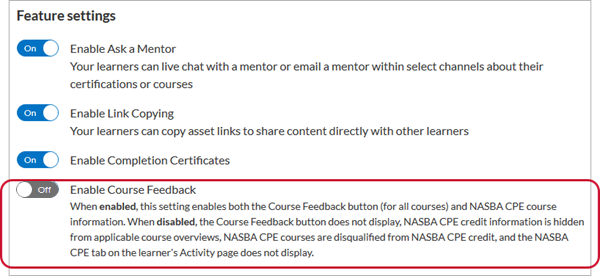 - and hides NASBA CPE credential and credit information in applicable course overviews.