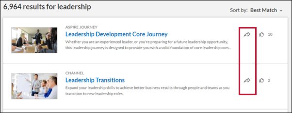 Search results now include a share icon, which lets you copy a link to content so you can share it with others in your organization.
