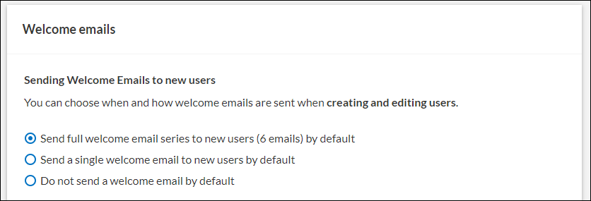 In Engagement settings, options for welcome email have been improved to make it easier to choose between a series of welcome emails or a single email, or to not send any email.