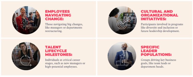 - Specific Leader Populations: Groups driving key business goals, like team leads or department heads.