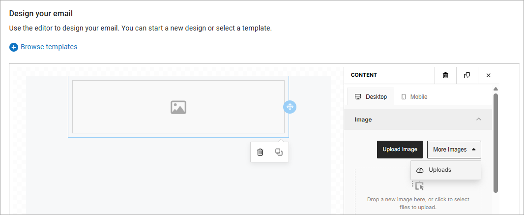 When you are done designing, select the Preview icon to see how your email will look on a desktop, tablet, or mobile device.