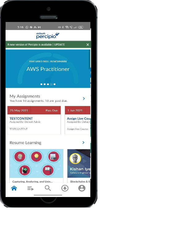 Skillsoft Percipio Platform notifies you when an update to the mobile app is available.