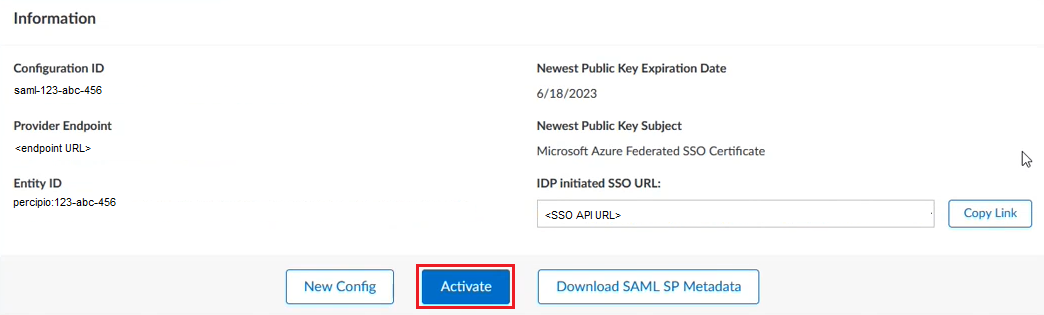 4. From the SAML Configuration page, select the Activate button. Your connection is now active.