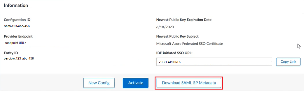 You can now download or generate the Percipio Service Provider SAML metadata or make any additional updates to the configuration as needed.