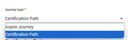 To make a journey a certification path, you must edit the Journey details page and select the Journey type of Certification path. After you change the Journey type to Certification Path, you must specify additional information around exams and credentials. A certification path can be created using any theme, Simple, Classic, or Concise.