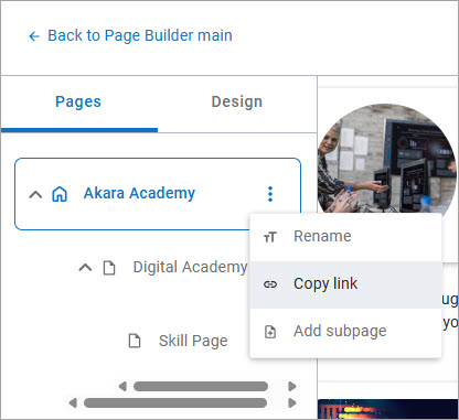 - Duplicate: Create a copy of the main page and all subpages. Use this feature if you want to create similar pages for many different audiences.