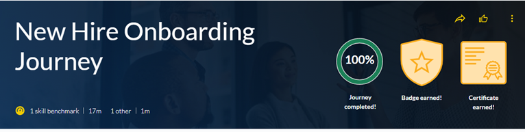 After a learner completes a custom content track or journey to which you added a badge, they see the status within the journey: Badge earned.