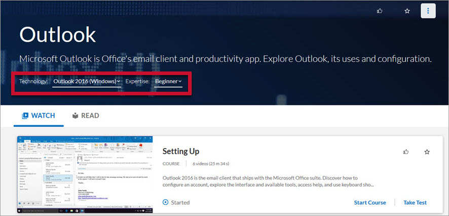 Modifications to the content selections affect only the selected channel view (language, technology, version, and/or expertise selected in the header).