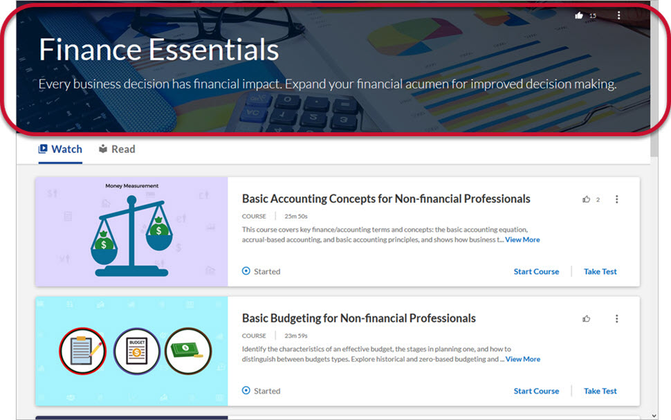 - Click Add content from library: Search the Skillsoft library for existing content.