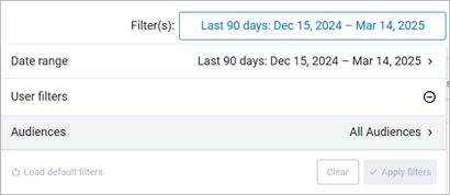 You can filter data on this dashboard by date, users, and audiences. To see just the data you need, specify global filters for this dashboard.