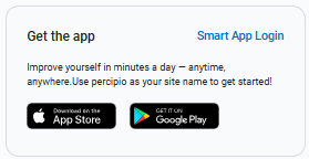 - (Default) On: Provides a banner promotion of the Mobile App with links to the Apple App Store and Google Play in the Percipio footer, login screens, and in email notifications. When on, the learner also sees the option for Smart app login, which generates a QR Code the user can use to log directly into the mobile app. The option for Smart app login shows under the user's profile menu and in the app promotion box.