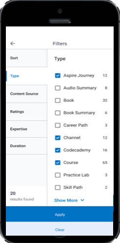 - Tap Apply, or tap Clear to reset selections.