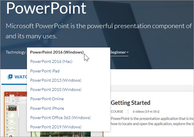 - Technology: A specific technology and version within the channel (for example, in the PowerPoint channel, technologies could include PowerPoint 2016 (Windows), PowerPoint 2016 (Mac), PowerPoint Online, PowerPoint iPhone, and more).