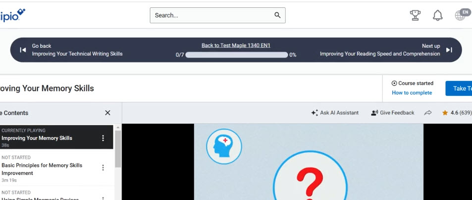 Upon answering all questions, you are presented with a set of content you must take to complete the dynamic content. When you launch a piece of content, you see a navigation bar across the top to guide you in completing all items that are associated with the dynamic content responses you provided.