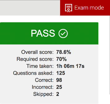 Exam mode displays if you passed or failed, in addition to the stats.