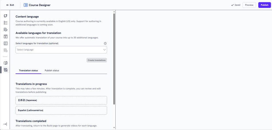 - Be sure to publish your translations to Percipio once they are complete so learners can access them.