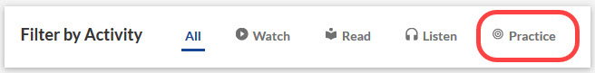 The Filter by Activity now includes Practice.