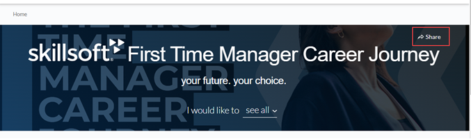 Learners entitled to Career Journeys can now share that Career Journey with others who are also licensed. Locate the share icon in the banner of the Career Journey.