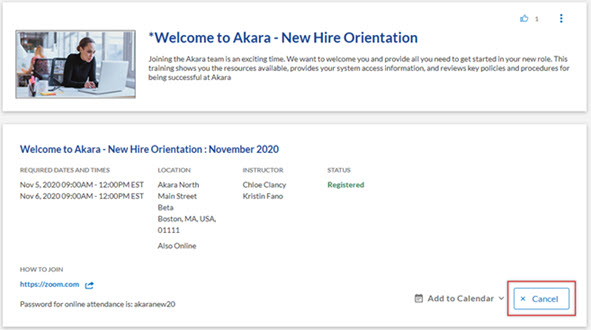 - Canceled: Either you canceled your registration, or the administrator or instructor canceled the class.