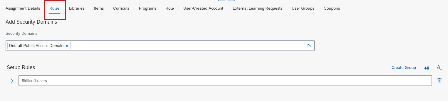 - Back on the Rules tab, next to Setup Rules, select Create Group.