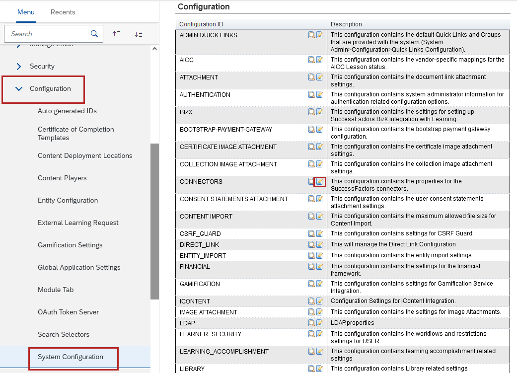 - On the Learning Administration menu, select System Administration > Configuration > System Configuration.