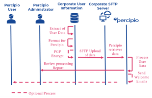Your HRIS system (for example, PeopleSoft) delivers a formatted CSV file to a secure server at a regular cadence (daily or weekly). Percipio picks up the file from the secure server and processes it at the regular cadence.