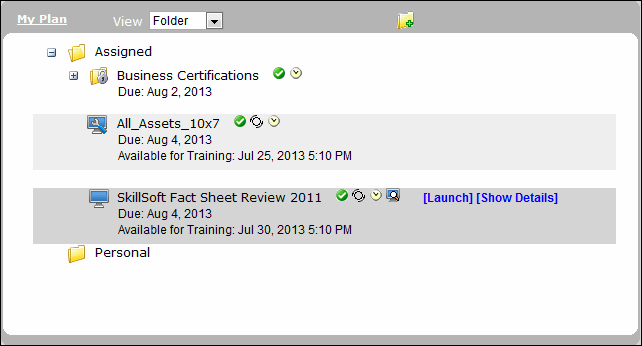 Obszar MÓJ PLAN zawiera liste wszystkich zasobów nauczania, które zostaly wybrane przez uczestnika i kierownika (lub administratora szkolenia). Moze tez sluzyc do realizacji okreslonych celów rozwoju i monitorowania czesto uzywanych zasobów nauczania. Gdy kierownik doda zasób szkoleniowy do obszaru MÓJ PLAN, uczestnik otrzyma automatyczne powiadomienie poczta elektroniczna.
