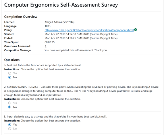 注:当您重新启动已完成的问卷或评估时,将显示“完成概览”页面。