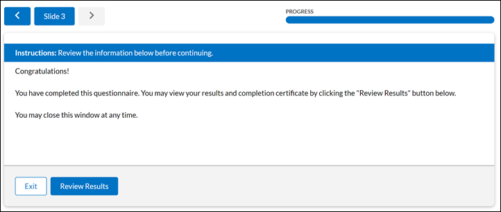 一旦完成问卷,您就可以退出,或者查看您的结果和完成证书。